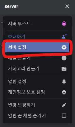 2. 빨간색 사각형으로 강조한 "서버 설정"을 좌클릭합니다.