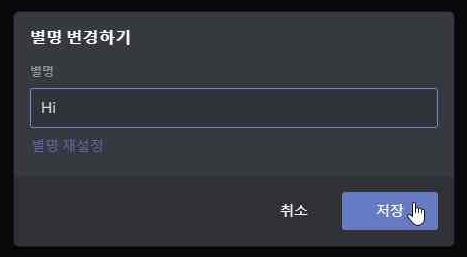 3. 원하는 별명을 입력후 하단에 보이는 " 저장 " 버튼을 클릭합니다.