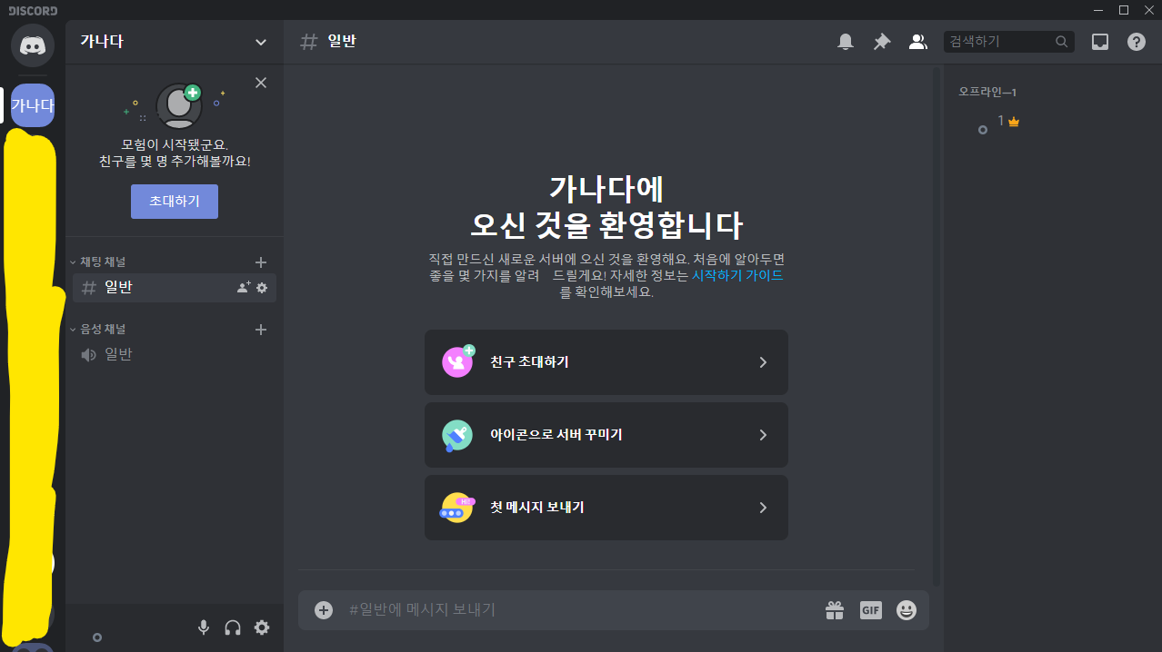 앞부분에서 말씀드렸지만 서버 소유자가 아닌 다른사용자들은 '서버 삭제'가 표시되지않으며