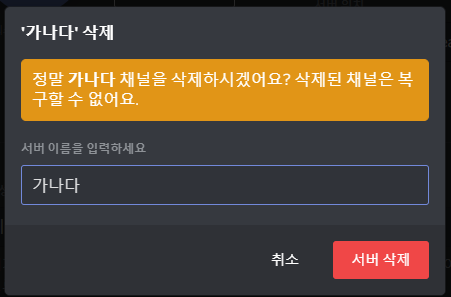 서버를 실수로 삭제하는것을 막기위해 서버 이름을 입력해야지만 서버를 삭제할수 있습니다.