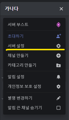앞부분에서 말씀드렸지만 서버 소유자가 아닌 다른사용자들은 '서버 삭제'가 표시되지않으며