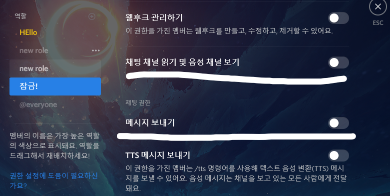 여기서 서버 설정에서 역할로 들어간다음