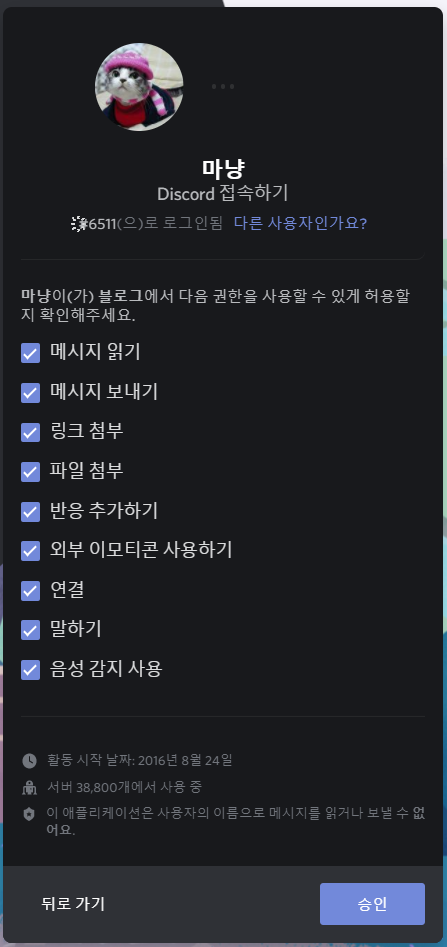 그리고 다음과 같이 권한을 모두 선택한다음에 하단에 있는 " 승인 " 버튼을 눌러주세요.