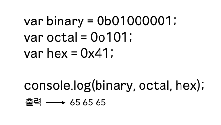 이처럼 자바스크립트는 10진수가 아닌 데이터 타입을 제공하지 않아서 값을 참조하면 모두 10진수로 해석된다는 것을 알 수 있다.
