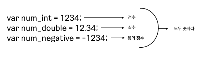 각각 변수에 정수, 실수, 음의 정수의 값을 넣었지만 자바스크립트에서는 이 모든 것들을 그저 실수로 본다는 것이다.