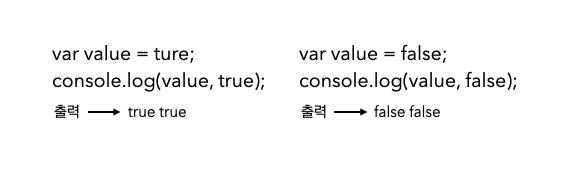 불리언 타입은 true, false 두가지 밖에 없다.