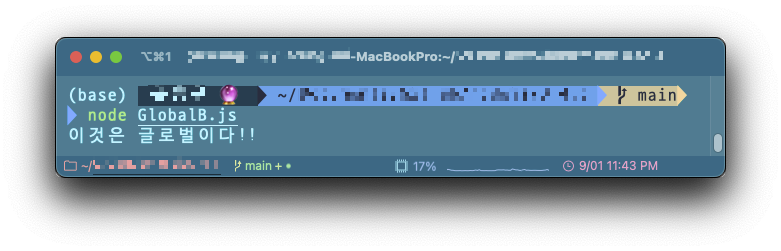 실행하게 되면 다음과 같이 GlobalB를 실행했지만 GlobalA파일의 message값을 가져와 수정한 것을 볼 수 있다.