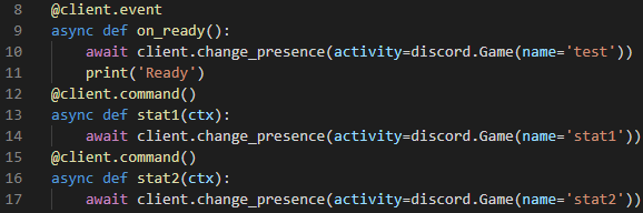 command로 stat1이라는게 입력되면 디스코드 봇에 " stat1 "이라는 게임중을 표시하고