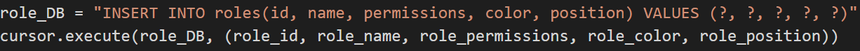 INSERT INTO라는 것을 활용해 roles라는 테이블에 데이터를 삽입하는 과정을 통해 수집한 데이터를 저장하는 방식으로 구성하였다..