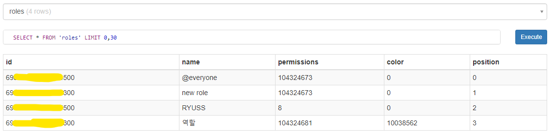 INSERT INTO라는 것을 활용해 roles라는 테이블에 데이터를 삽입하는 과정을 통해 수집한 데이터를 저장하는 방식으로 구성하였다..