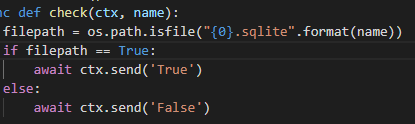 그리고 저장된 데이터 베이스의 이름을 입력한다음 os.path.isfile를 통해 해당 위치에 파일이 있는지 확인을 한다.