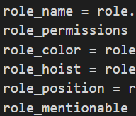 이렇게 역할 중에서도 여러 가지 세부 데이터를 수집해 구분하기 쉽도록 앞에는 role, channels 같은 걸로 지정하고 뒤에는 부가 데이터 이름으로 설정해 구분하기 쉽도록 변수를 지정하였다.